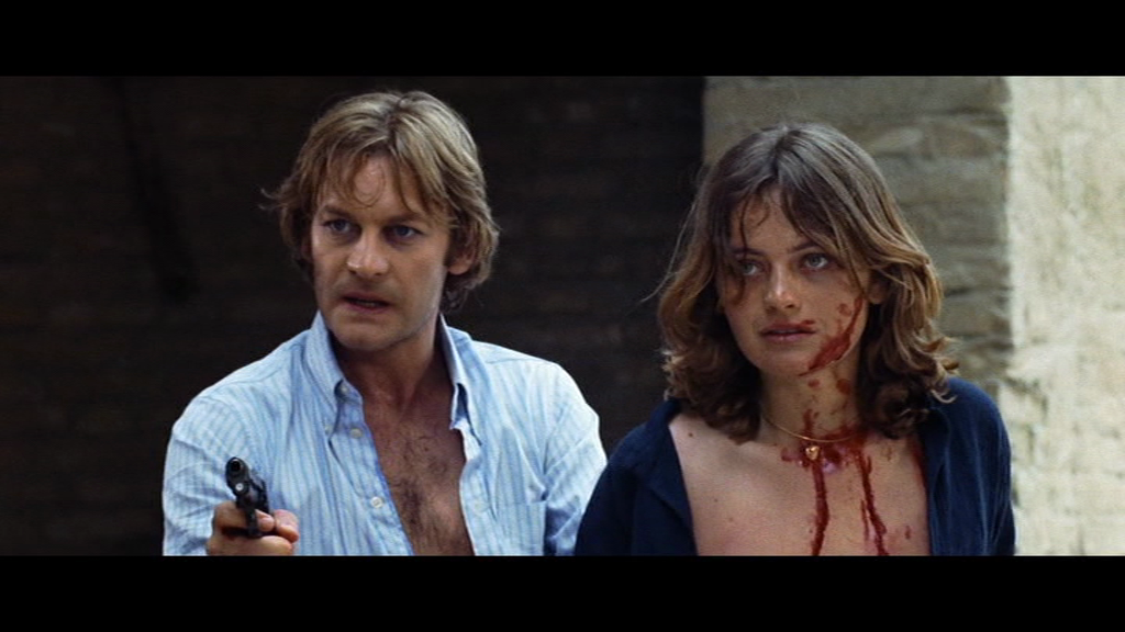 Eine ausgeklügelte Geschichte ist hierfür allerdings kaum nötig, da man eine legendäre One-Man-Show geboten bekommt, die von Helmut Berger exzellent und beängstigend authentisch dargestellt wird. Mit ihm muss man sich im Klaren darüber sein, dass er keine Atempausen gewähren wird. Will man seiner Motivation auf den Grund gehen, so afllen einem zwischen Sadismus und Blutrache viele Gründe für diese blutige Vendetta ein, die hervorragend im Bild festgehalten ist. Hinzu kommt eine musikalische Unterstützung, die in den richtigen Momenten für Stimmungen und Schwingungen sorgt, dementsprechend auch zuzupacken weiß.Ein buchstäblich tollwütiger Helmut Berger zeigt seinen eindrucksvollen Alleingang, bei dem er alle verfügbaren Register zieht und quasi jede Möglichkeit ausschöpft, sich so richtig auszutoben. Berger präsentiert hier eines seiner vielen Gesichter mit einer Intensität, die alle anderen beteiligten Personen in den Schatten verweist. Nanni Vitale kann wohl als unterster Bodensatz des Abschaums bezeichnet werden. Es handelt sich um einen unberechenbaren, in höchstem Maße gewaltbereiten und unmenschlichen Charakter, der mit ausschließlich niederen Impulsen handelt, eindimensional denkt und dementsprechend agiert. Nach der Flucht möchte Nanni also zuerst dem Prozesszeugen, der ihn einst so schwer belastete, seine Spezialbehandlung verpassen. Vorher muss er aber noch angestaute Aggressionen loswerden, stiehlt einen Wagen und prügelt unbeteiligte Personen ins Krankenhaus, vielleicht auf den Fiedhof. Schließlich findet er sein Opfer und nimmt ihn und dessen Freundin Giuliana mit an einen abgelegenen Ort, an dem es losgehen kann. Der Mann wird von den Ausbrechern halb tot geschlagen, Giuliana wird zwischendurch brutal vergewaltigt, bis man schließlich ihren Freund bestialisch umbringt.