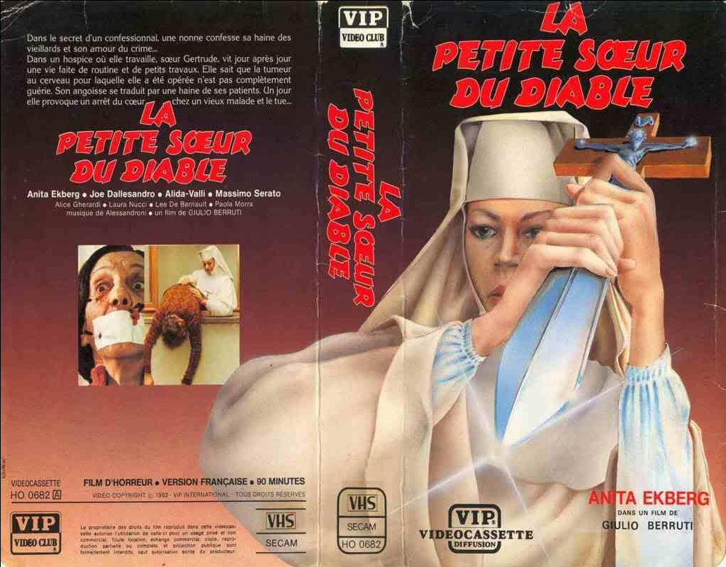 GESTÄNDNIS EINER NONNE beruht sehr lose auf der wahren Geschichte der Cécile Bombeek. die 1977 als Ordensfrau in einer belgischen Heilanstalt zahlreiche Morde beging. In Giulio Berrutis Version der Geschichte gerät die Protagonistin zunächst in eine Abwärtsspirale aus Sucht und Wahnsinn, bevor sie sich in eine vermeintlich mordende "Bestie im Nonnengewand" wandelt, der zahlreiche Patienten zum Opfer fallen. In der Hauptrolle brilliert Anita Eckberg als morphiumsüchtige Ordensschwester, die infolge ihrer Suchterkrankung immer mehr dem Wahnsinn verfällt. Ihre Rolle spielt sie dabei nicht nur glaubwürdig, sondern auch äußerst ernsthaft. Gleiches gilt für Massimo Serrato und Alida Valli, die in ihren jeweiligen Rollen ebenfalls glänzen. Während Serrato einen verantwortungsvollen Arzt verkörpert, der auf Geheiß der der morphiumsüchtigen Nonne strafversetzt wird, spielt Alida Valli die Mutter-Oberin, die es mit ihrerer untergebenen Schwester Gertrude nicht immer leicht hat. Hinzu gesellen sich Lou Castel in der Rolle eines querulantischen Patienten, der sich infolge von Lähmungserscheinungen auf Krücken fortbewegt, und Joe Dallesandro, der seine Rolle als Dr. Patrick Roland mehr schlecht als recht spielt. Obwohl er nur eine Nebenrolle inne hat, fällt es ihm augenscheinlich schwer, diese adäquat auszufüllen. Last but not least wäre da auch noch Daniele Dublino, der die Rolle des überforderten Krankenhausdirektors mimt. Abgerundet wird der mörderischen Nonnenschanz mit einer erstklassigen Filmmusik von Alessandro Alessandroni. Letztlich entpuppt sich GESTÄNDNIS EINER NONNE als ein außergewöhnlicher Vertreter des Nunploitation-Genres, bei dem weniger nackte Tatsachen, die es natürlich auch zu sehen gibt, sondern vielmehr exploitative Thrillerelemente im Fokus stehen. Außerdem spielt sich das Geschehen in der Gegenwart ab, was wiederum einen weiteren Unterschied zu den gängigen Nunploitaion-Werken darstellt. Hierzulande wurde der Film vor vielen Jahren von Koch Media als DVD veröffentlicht, wobei die enthaltene Fassung weder das korrekte Bildformat aufweist, noch ungeschnitten ist. Zwar offenbaren sich die Kürzungen als geringfügig, aber da es sich ausgerechnet um eine der zentralen Mordszenen handelt, empfand ich das Fehlen dieser Einstellungen doch ein wenig ärgerlich.