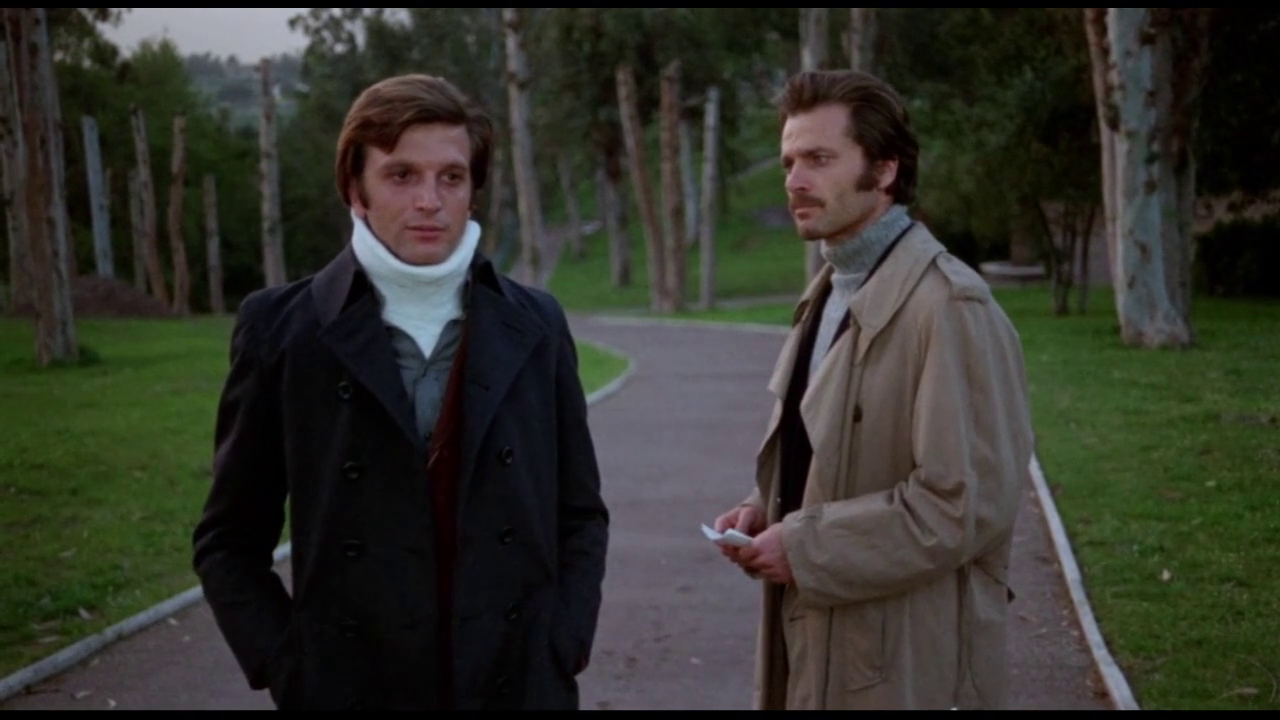 Neben der visuellen Wucht des Film glänzen ebenso die beteiligten Schauspieler und Schauspielerinnen mit ausgezeichneten Darbietungen. Franco Nero spielt dabei den Hauptprotagonisten Andrea, dessen Leben im Kreis der besseren Gesellschaftsschicht offensichtlich schon etwas länger aus den Fugen geraten ist. Eine gescheiterte Existenz, die täglich besoffen im Selbstmitleid versinkt. Als Zuschauer fällt es schwer, dem Rollencharakter Neros etwas positives abzugewinnen, denn Andrea ist ein ruppiger Grobian, der nicht nur wenig Rücksicht auf seine Mitmenschen nimmt, sondern auch Frauen schlägt. Während er einerseits seiner Ex-Geliebten Hélène hinterhertrauert, führt er andererseits eine offene Beziehung mit der viel jüngeren Lù Auer, die ihm aber des öfteren über den Kopf wächst. Bazzonis Film handelt dementsprechend von egozentrischen Menschen aus besseren Gesellschaftskreisen, gestörten Beziehungen, Entfremdung und Einsamkeit. Während Hélène eine gestandene Frau verkörpert, wirkt Lù Auer eher wie eine Lebefrau, die ihr Leben in vollen Zügen genießt und manchmal auch zu makaberen Späßen aufgelegt ist. Ira von Fürstenberg spielt leider nur eine kleine Nebenrolle, die im Film nur ganz selten in Erscheinung tritt. Die Rolle des Kommissars wird überzeugend von dem deutschen Schauspieler Wolfgang Preiss verkörpert. Ansonsten sind auch noch Rossella Falk, Agostina Belli, Corrado Gaipa, Guido Alberti und Andrea Scotti mit von der Partie. Die deutsche Synchronfassung stammt aus den Defa-Studios und kann sich hören lassen. Hierzulande wurde der Film vor einigen Jahren von FilmArt mit einer prächtigen Bildqualität als BD herausgebracht. Aufgrund eines fehlenden BD-Laufwerks am PC musste ich aber für die Screenshots auf eine anderweitige Bildquelle zurückgreifen.