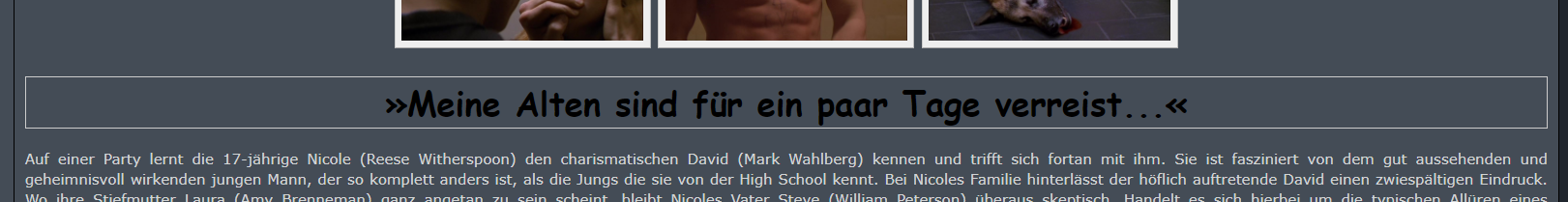 [table=width:100%;border:1px solid #cccccc;][td=]»Meine Alten sind für ein paar Tage verreist...«[/td][/table]