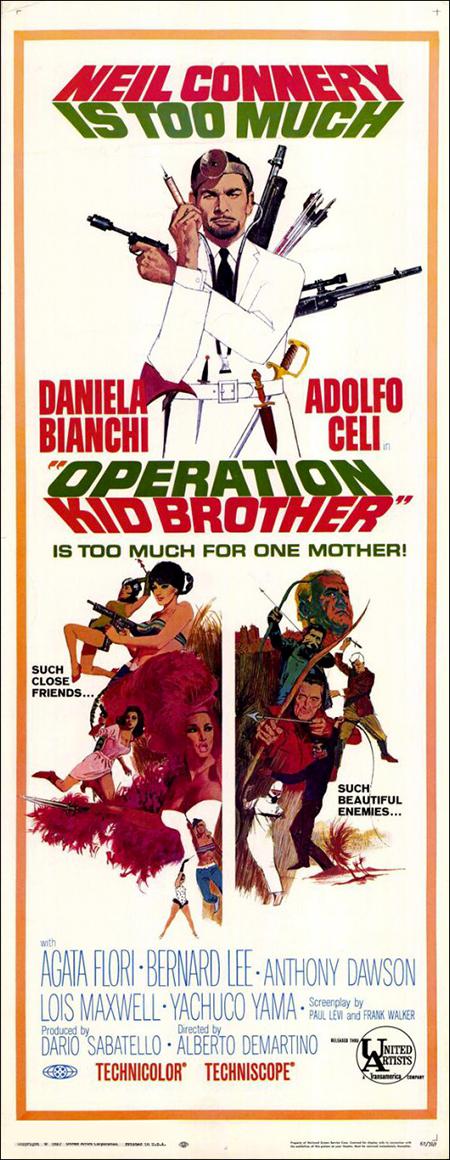 Ein schwer unterhaltsamer Genrebeitrag, den Alberto De Martino im Jahr 1967 auf die Beine stellte. OPERATION "'KLEINER BRUDER' zählt nicht nur zu meinen persönlichen Favoriten des Eurospy-Genres, sondern stellt zugleich eine gelungene Persiflage auf die 007-Filme dar, ohne dabei klamaukig zu wirken. Der Clou des Films ist, dass der Regisseur neben den altgedienten Bond-Schauspielern Bernard Lee, Lois Maxwell, Daniela Bianchi, Adolfo Celi und Anthony Dawson auch Neil Connery, den leiblichen Bruder von Sean, als Hauptdarsteller für sein Werk verpflichtete, obwohl dieser mit der Schauspielerei so rein gar nichts am Hut hatte. Umso erstaunlicher ist die Performance, die Neil Connery in diesem Film aufs Parkett legt. Zwar merkt man ihm die fehlenden Schauspiel-Skills an, was ihn dennoch nicht daran hindert, seine Rolle als unausgebildeter Quereinsteiger im Rahmen dieser comichaften Geschichte glaubhaft zu verkörpern. Wenn man dem Eintrag in der Wikipedia Glauben schenken darf, dann spielte sich die Rekrutierung von Neil Connery folgendermaßen ab: "Als Sean Connerys Bruder Neil, von Beruf Stuckateur, Anfang der 1960er eine Tasche mit seinem Arbeitswerkzeug gestohlen wurde, wandte er sich an die Presse und gab unter anderem ein Radiointerview. Durch dieses Interview wurde der Produzent Dario Sabatello auf ihn aufmerksam und lud ihn zu Probeaufnahmen nach Rom ein, woraufhin er ihm die Hauptrolle in Operation 'Kleiner Bruder' anbot. Neil Connery sollte dafür 5.000 Pfund erhalten, was im Jahr 2012 ca. 80.000 Euro entspricht. Zusätzlich zu Neil Connery in der Hauptrolle engagierte Sabatello fünf Schauspieler, die bereits aus James-Bond-Filmen bekannt waren. Bernard Lee und Lois Maxwell spielen ähnliche Rollen wie in der James-Bond-Reihe, wo sie M und Miss Moneypenny verkörperten. Auch Adolfo Celi und Anthony Dawson waren als Schurken aus Feuerball bzw. Dr. No bekannt. Letzterer spielte außerdem Blofeld in Liebesgrüße aus Moskau und Feuerball, wo jedoch jeweils nur seine Hände zu sehen waren. Dazu kam noch Daniela Bianchi, das Bondgirl aus Liebesgrüße aus Moskau." (Quelle)