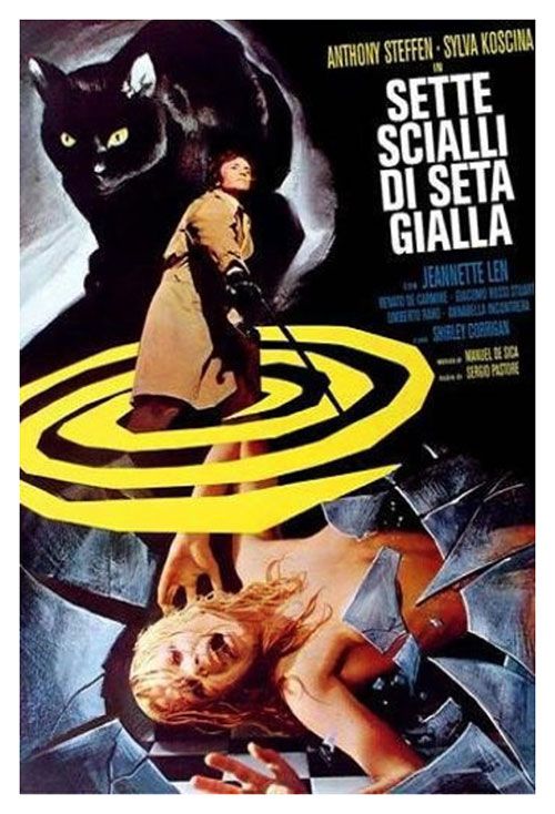 Zwar kann Sergio Pastores 7 SCIALLI DI SETA GIALLA keinesfalls zu den Glanzleistungen des Giallo-Genres gezählt werden, bedient sich dafür aber dermaßen ungehemmt bei diesen, dass der Film schließlich doch noch einen äußerst hohen Unterhaltungswert mit sich bringt. Letztendlich beinhaltet 7 SCIALLI DI SETA GIALLA sowohl einige tragenden Plotelemente aus DAS GEHEIMNIS DER SCHWARZEN HANDSCHUHE, den blinden Hobby-Ermittler aus DIE NEUNSCHWÄNZIGE KATZE, die leicht umgedeutete Duschszene aus PSYCHO, Edgar Allans schwarze Katze als auch eine Modehauskulisse, die unweigerlich an BLUTIGE SEIDE erinnert. Obendrein arbeitet der Hauptprotagonist an der Vertonung von Lucio Fulcis A LIZARD IN A WOMAN'S SKIN, von dem dann auch einige aus dem privaten Tonstudio des Maestros stammenden Filmsequenzen gezeigt werden. Die Wahl des Hauptdarstellers fiel letztendlich auf das Rauhbein Anthony Steffen, der mit einer versteinerten Mine einen erblindeten Komponisten verkörpert, der sowohl ein riskantes als auch hochgefährliches Ermittlungsspiel betreibt. Dabei scheint sein Leid und sein Schmerz untrennbar in seinen versteinerten Gesichtszügen eingemeißelt zu sein. Unterstützt wird er bei seiner Ermittlertätigkeit von Umberto Raho, der im als ergebener Untertan jederzeit mit Rat und Tat zur Seite steht, sowie Shirley Corrigan, die in der Rolle der charmanten Margot unweigerlich das Fürchten lernt. Giacomo Rossi Stuart verkörpert hingegen einen niederträchtigen Schwerenöter, der seine Ehefrau nicht nur hinter deren Rücken mit dem ersten Todesopfer betrug, sondern auch noch mit einigen anderen Models des familiären Atelierbetriebes etwas am Laufen hat. Die Dame des Hauses wird von keiner Geringeren als der entzückenden Sylva Koscina gespielt, die hinsichtlich der Wahl ihres Lebenspartners alles andere als zu beneiden ist. Gedreht wurde der Film übrigens in Dänemark, genauer gesagt in der Landeshauptstadt Kopenhagen. Dieser ungewöhnliche Drehort versprüht nicht nur eine wohlige Thrilleratmosphäre, sondern mutet beispielsweise während der nächtlichen Szene am menschenleeren Bahnhof auch sehr unheimlich an.