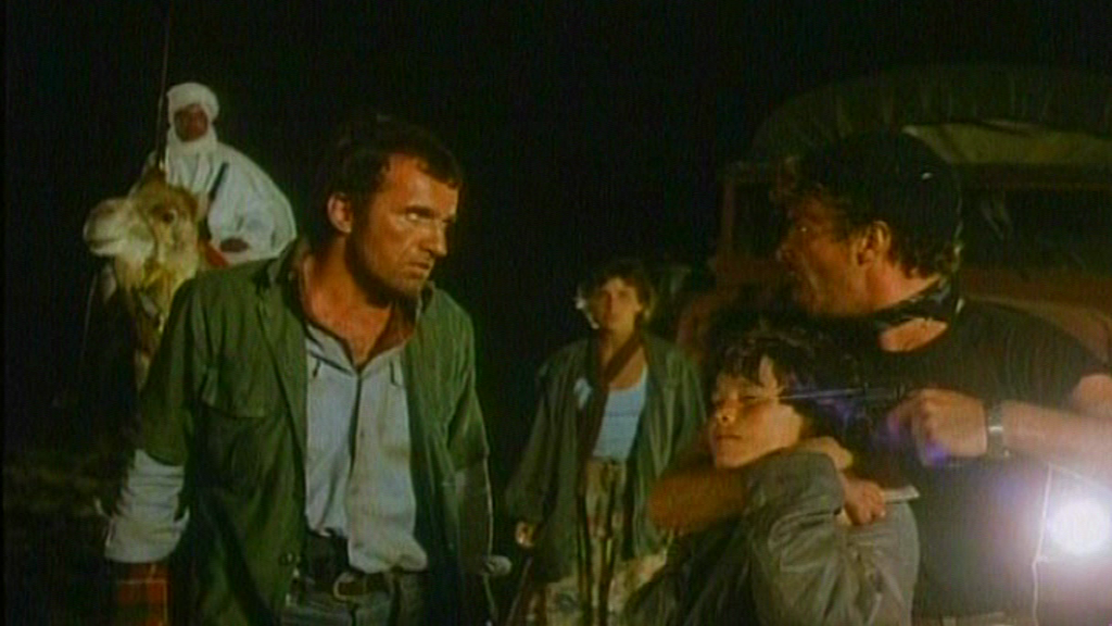 Das damit einhergehende, aber unterkühlt behandelte Thema Terrorismus (hier wäre mittels einer weniger lethargischen Spielweise der Antagonisten deutlich mehr drin gewesen) sowie das Filmproduktionsjahr, 1978, könnten übrigens darauf hinweisen, dass die im Filmfinale praktizierte Flugzeugentführung an die von „Old Man“, Wadi Haddad, angebotene und von Brigitte Mohnhaupt und Peter Jürgen Boock gutgeheißene Entführung der „Landshut“ (Oktober, 1977) angelehnt ist. Apropos Geiselnahme: Franco Nero, der den obskuren Jean Ballard gibt, spielte rund zwei Jahre vor „Sahara Cross“ in William A. Grahams „Die 21 Stunden von München“ den Terroristen und Geiselnehmer Issa. Ja, mir ist bewusst, dass Sie das selber nachlesen können, deshalb verstehen Sie den Hinweis auch bitte nicht als eine belanglose Castinformation, sondern als einen Sichtungstipp, da es sich um einen wirklich sehenswerten wie vorzüglich besetzten, amerikanischen TV-Film handelt!