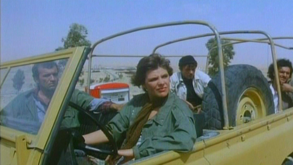 Jenes halbherzige Betätigen des Gaspedals verschleiert freilich nicht die bevorstehende Reiseroute. Ein mehrköpfiges Team verliert eines seiner Mitglieder und will die Verantwortlichen zur Rechenschaft ziehen. Daran schließt sich die kollektive Suche beziehungsweise die Jagd, welche durch die nordafrikanische Sahara führt, nach den Schuldtragenden. Die Zusammenkunft von Jägern und Gejagten und der Schauplatz Wüste lassen nahezu zwangsläufig an einen Western denken. Und da kreativer Irrsinn straffrei und meines Erachtens einer Filmbesprechung nicht schaden kann, mag ich an dieser Stelle von einer simplen (Schauplatz-)Verlagerung sprechen, dessen Indikator sich folgendermaßen definieren lässt: Die Besiedlung des amerikanischen Kontinents wurde 10 Jahre vor Ausklang des 19. Jahrhunderts als abgeschlossen apostrophiert und einhergehend der frontier, das Grenzland zwischen Wildnis und Zivilisation, die Daseinsberechtigung entzogen. Mit Anbruch der 1960er Jahre verlagerten zahlreiche Western ihr Geschehen weg von der frontier und ließen ihren Handlungsstrang beispielsweise in Alaska, Kanada sowie im El Dorado der Outlaws, Mexiko, ablaufen. Da diverse SciFi-Vehikel die frontier gar in den Weltraum verfrachteten, ist es prinzipiell auch kein Problem sie in die Wüste zu verlagern, um die Neo-Pioniere der 1970er in das unerschlossene Wüstengebiet zwischen Ölfeldern, Beduinen und allegorischen Zivilisationsverweigerern (Terroristen) treten zu lassen.