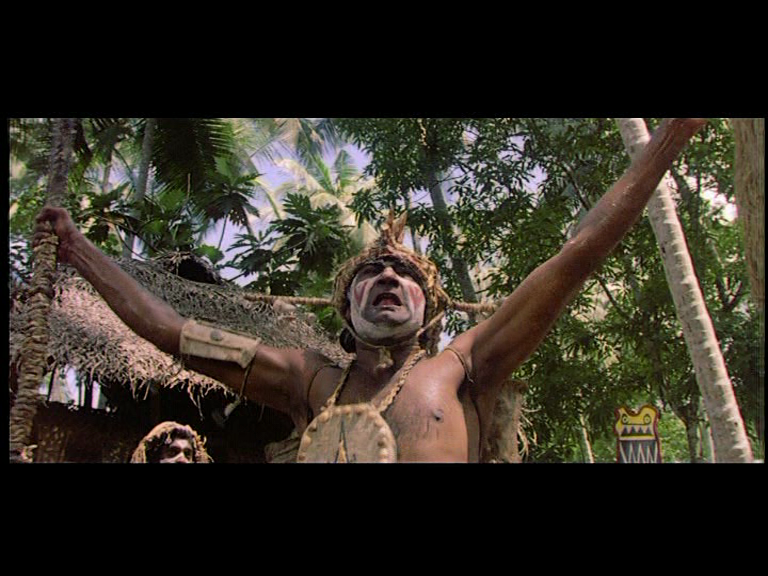 Auch Sergio Martino durfte sich 1979 im Fahrwasser des Erfolgsgiganten DER WEIßE HAI mit der Inszenierung eines kostengünstigen Italo-Plagiats unter Beweis stellen, wobei er letztendlich ein der Genre-Konventionen entsprechend solides als auch äußerst gefälliges Filmprodukt abliefern konnte. Martino präsentiert uns mit DER FLUSS DER MÖRDERKROKODILE einen dermaßen mörderschuppensträubenden Unfug, dass man diese Kroko-Sause einfach nur gern haben muss. Zudem stammt das Drehbuch von keinem Geringeren als dem guten Man-Eater George Eastman, der uns einiges wissenswertes über das Fantasievolk der Kumas, das nicht nur in der Abgeschiedenheit einer nicht näher bezeichneten Wildnis sein friedliches Dasein fristet, sondern auch gerne mal ekstatische Fruchtbarkeitsriten auf der „Insel der Liebe“ zelebriert, näher bringt. Doch nachdem der skrupellose Geschäftsmann und Schauspieler Mel Ferrer das bis dato unberührte Naturparadies zur Errichtung seines kapitalistischen Erholungstempels in desaströse Mitleidenschaft zog, erzürnt dies die Kumas dermaßen, dass diese wiederum ihren großen Flussgott beschwören, der sich daraufhin als ein klobiges, ungelenkes, steifes und völlig überdimensioniertes Mörderkrokodil aus gummierten Pappmaché entpuppt. Und dieses setzt sich seiner Möglichkeiten entsprechend in Bewegung, um den verantwortlichen Umweltvernichtern ihre gerechte Strafe zukommen zu lassen. Dabei fällt der Rachefeldzug des recht schwerfälligen Reptils recht unblutig aus, aber recht herzhaft munden tut seine Vendetta dennoch. Zu allem Überfluss wird der persönliche Rachefeldzug auch noch von einer militanten Truppe des ebenfalls aufgebrachten Volksstammes begleitet, die zur gleichen Zeit an Land ihre völlig erbarmungslose Rache an den hilflosen Hotelgäste verüben. Und inmitten dieser kriegsähnlichen Katastrophe wurden dann Barbara Bach und Claudio Cassinelli von den Produzenten ausgesetzt, damit sie dem Zuschauer auf ihrer Flucht vor der blutrünstigen Gummibestie die zu erwartende Unterhaltung bieten, was ihnen schlussendlich auch problemlos gelingt. Schließlich standen Herr Cassinelli und Frau Bach bereits im gleichen Jahr in dem gleichfalls unter der Regie von Sergio Martino entstandenen Abenteuerfilms INSEL DER NEUEN MONSTER gemeinsam vor der Kamera und waren somit für die anstehenden Dreharbeiten des Krokodil-Horrors auf Sri Lanka schon bestens aufeinander eingespielt. Romano Puppo wurde zudem die Rolle des Handlangers von Mel Ferrer zugesprochen, der sich dann auch so einige Male vor der Kamera blicken lässt. In einer Szene verfüttert Puppo sogar kleine Schweine an hungrige Otto-Normal-Krokodile, wobei hier aber kein tatsächlicher Tiersnuff stattfindet, denn den zähnefletschenden Mäulern wurde letztendlich vorgegarte Fleischkost zugeführt.