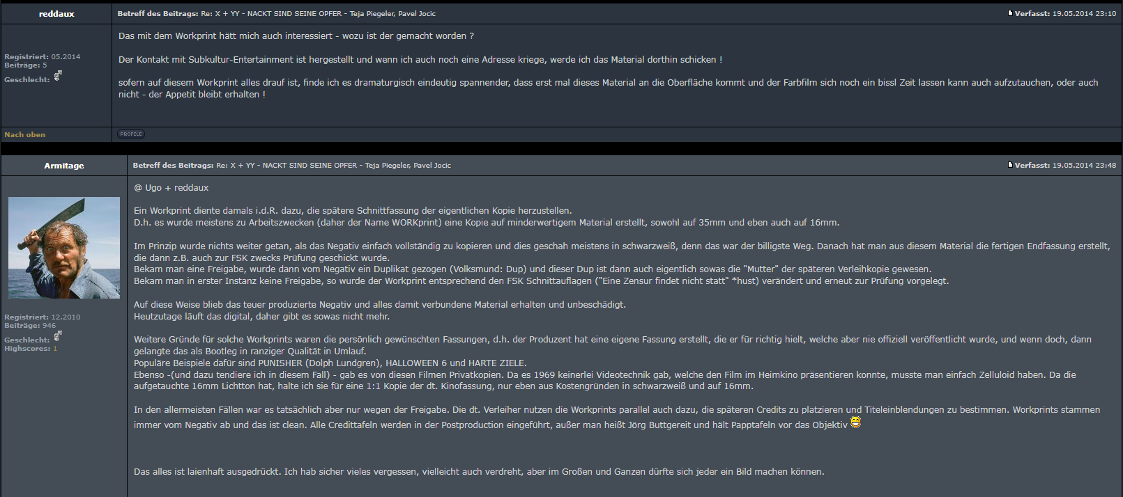 Vielen Dank dafür - Wenn ich mich recht erinnere, hatte Subkultur dann in den Kanistern einen anderen Film gefunden (also auf dem Flohmarkt), aber eben das Promomaterial, dass sie dann gepostet haben...