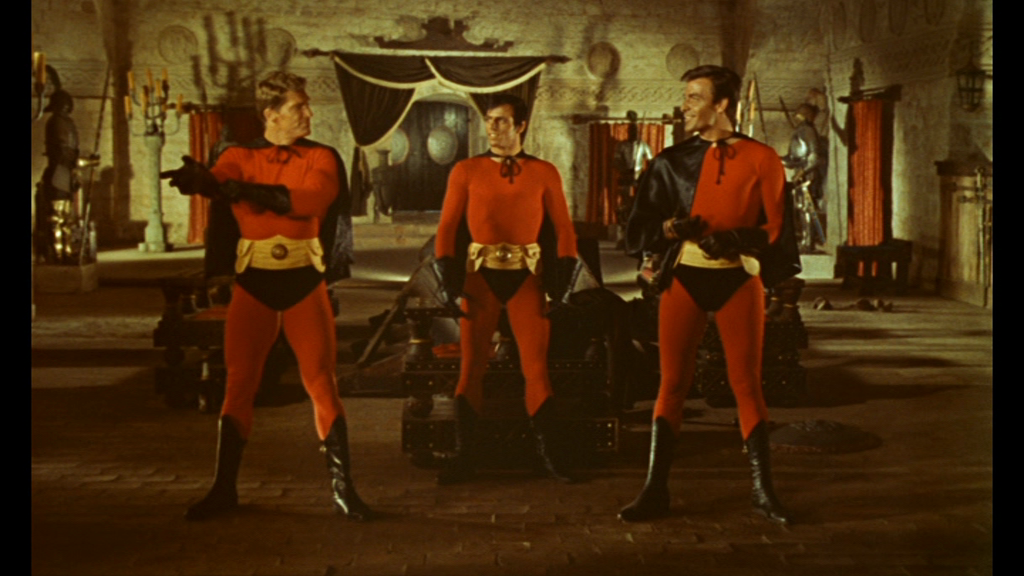Ein kindhafter Filmspaß, den Gianfranco Parolini kurz vor dem Dreh zum 5. Kommissar-X-Film in Jugoslawien fabrizierte. Herausgekommen war ein teils überspannter Superheldenfilm, der zwar in Verbindung mit dem albernen Sprüchegewitter an manchen Stellen etwas anstrengend wirkt, aber dennoch im Großen und Ganzen einen großen Spaß bereitet. Neben Tony Kendall und Brad Harris, die Parolini aufgrund der Kommissar-X-Reihe zur Verfügung standen, gesellt sich noch der italienische Stuntman Aldo Canti a.k.a. Nick Jordan zum Team der drei schurkenhaften Supermänner hinzu und fertig ist das frischgebackene Superheldenteam, welches im vorliegenden Film für viel Turbulenz und akrobatische Action sorgt. Hinzu gesellen sich zahlreiche Verfolgungsjagden, die mit ständig wechselnden Vehikeln vonstattengehen, sowie allerhand Prügeleien, die die drei Superhelden auf dem Weg zu ihrem Erfolg zunächst meistern müssen. Eingezwängt in ritzerote Strampelanzüge, deren Neoprenbeschichtung obendrein kugelsicher ist, versuchen die drei Superhelden eine Dupliziermaschine aus dem Verkehr zu ziehen, mit der der von Jochen Brockmann verkörperte Superschurke Golem Geld, Gold und Menschen repliziert. Aber es geht noch skrupelloser, denn Golem schreckt noch nicht einmal davor zurück, eine ganze Horde Kinder im Grundschulalter zu klonen, um sich derer wahren Existenzen anschließend für immer zu entledigen. Während der von Aldo Canti gespielte Nick lediglich die zwei Worte 'schön' und 'klasse' beherrscht, und zwar von Geburt an, betreibt der von Tony Kendall verkörperte Superheld nebenbei ein Institut, in dem er hübsche Ganovinnen zu Superfrauen ausbildet. Kein Wunder also, dass es in dem Film vor chauvinistischen Sprüchen nur so wimmelt, die aber allesamt als Kinder ihrer Zeit anzusehen sind. Was den damaligen Erfolg an den deutschen Kinokassen angeht, so reiht sich der Film mit 588.000 Besuchern im Mittelfeld aller im Jahr 1967 gezeigten Kinofilme ein.