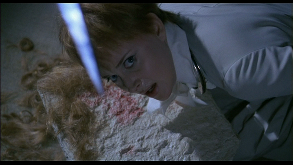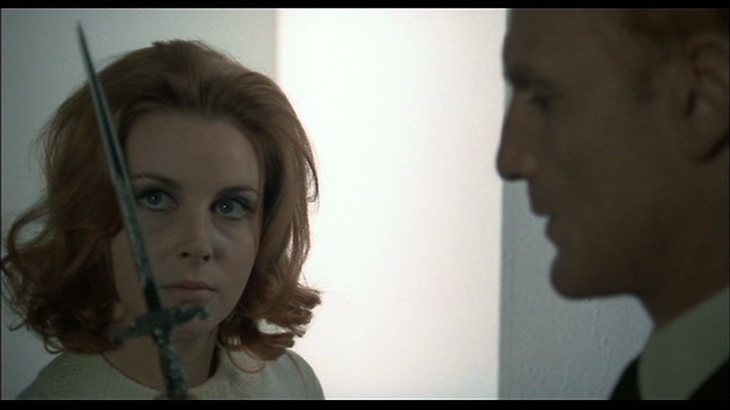 Dabei gelingt es ihr nicht nur das verzerrte Selbstbild des selbsternannten Adonis ins Wanken zu bringen, sondern fördert auch dessen Erbärmlichkeit zu Tage, was ihn wiederum wie ein armes Würstchen wirken lässt. In der ersten Filmhälfte hingegen, rutscht sie zunächst unfreiwillig in die Opferrolle, wobei sie allerlei Erniedrigungen über sich ergehen lassen muss: Maria wird mehrmals gefesselt, kalt geduscht, bekommt den Kopf geschoren, muss ihrem erbärmlichen Marquis De Sade-Verschnitt erotische Fußreflexzonenmassagen verpassen, den Befehl zum Liebesspiel mit einer des Doktors ebenbildähnlichen Gummipuppe ausführen oder für diesen nur in Leinen gehüllt eine heiße Sohle aufs Parkett legen. Die heiße Tanzeinlage, in der Dagmar Lassander besonders reizvoll durchs Wohnzimmer tänzelt, stellt für mich einen der vielen betörenden Höhepunkte des Films dar. Ebenfalls unvergessen bleibt das gemeinsame Orgelspiel, bei dem mir die beiden vorgetragen Musikstücke seit dem ersten Hören nicht mehr aus dem Ohr gehen.